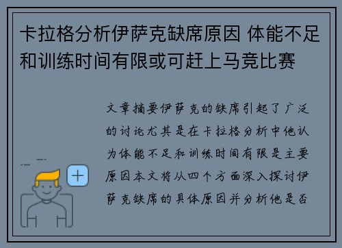 本文将详细讨论德国国脚卡伊·维尔茨(Kai Havertz)周二回归德国队训练的相关情况。维尔茨上周因腿部抽筋暂时缺席训练,引发了外界对其健康状况的关注。经过几天的休养与治疗,他终于能够恢复并加入到球队的训练中来。本文将从四个方面来解析维尔茨回归训练的意义及其对德国队的影响,分别从维尔茨缺席的背景、回归训练的过程、对球队的意义以及未来展望等四个角度进行详细阐述。通过这些分析,读者将能全面了解维尔茨...